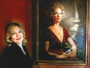 Original "Dark Shadows" cast member Lara Parker today with the famous portrait of her in character as the powerful witch