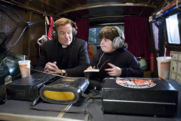The poster for Robin Williams' latest "comedy" and this still of he as the Priest from hell with his creepy toady almost says it all