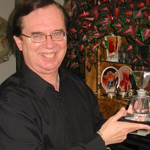 Robert Otto, the world's largest collector of Marilyn Monroe memorabilia holds her Joy perfume bottle; a smidgen of Otto's
